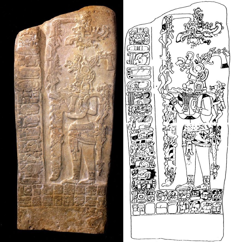 Please look at the Hauberg stela (to the right, a precise tracing to better distinguish the engraving), made in 200 CE, that announces the coronation of a certain maya ajaw (what they called the supreme lords of their city-states).