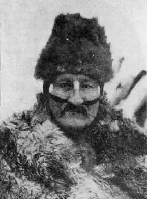 To the left, a picture of the aforementioned Tenenesk, a seasoned Xo’on of mixed ancestry (Selk’nam-Haush), wearing traditional makeup for a very special occasion, the celebration of the Hain ceremony. Likely taken by his friend Lucas Bridges7 in the early 1920s. Do notice his mustache, a sign of the europeization he and other few surviving Selk’nam went through by the end of XIX century.
